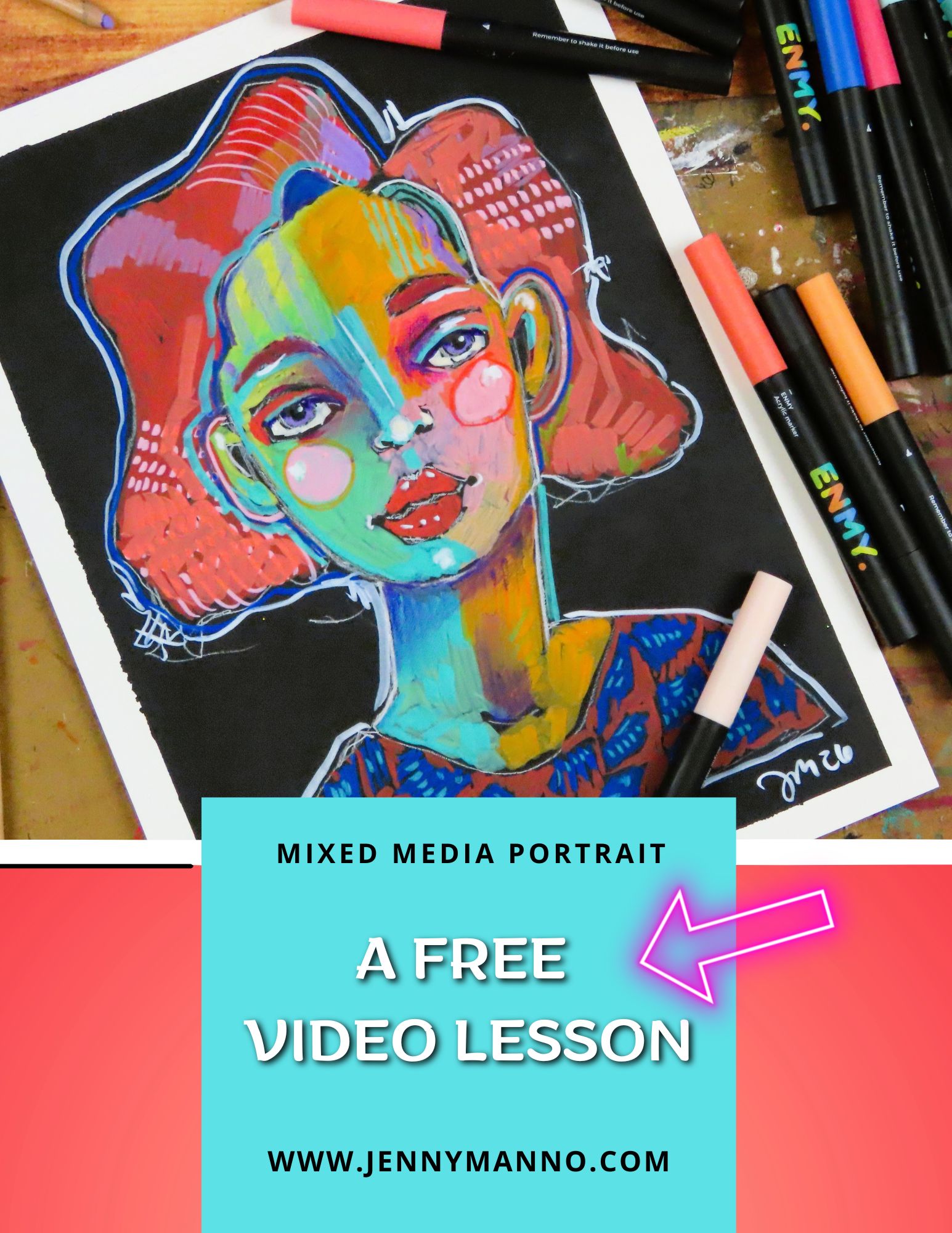 Known for her expressive mixed media portraits and playful teaching style, Jenny encourages artists to experiment, embrace imperfection, and discover the magic that happens when creativity is allowed to breathe.